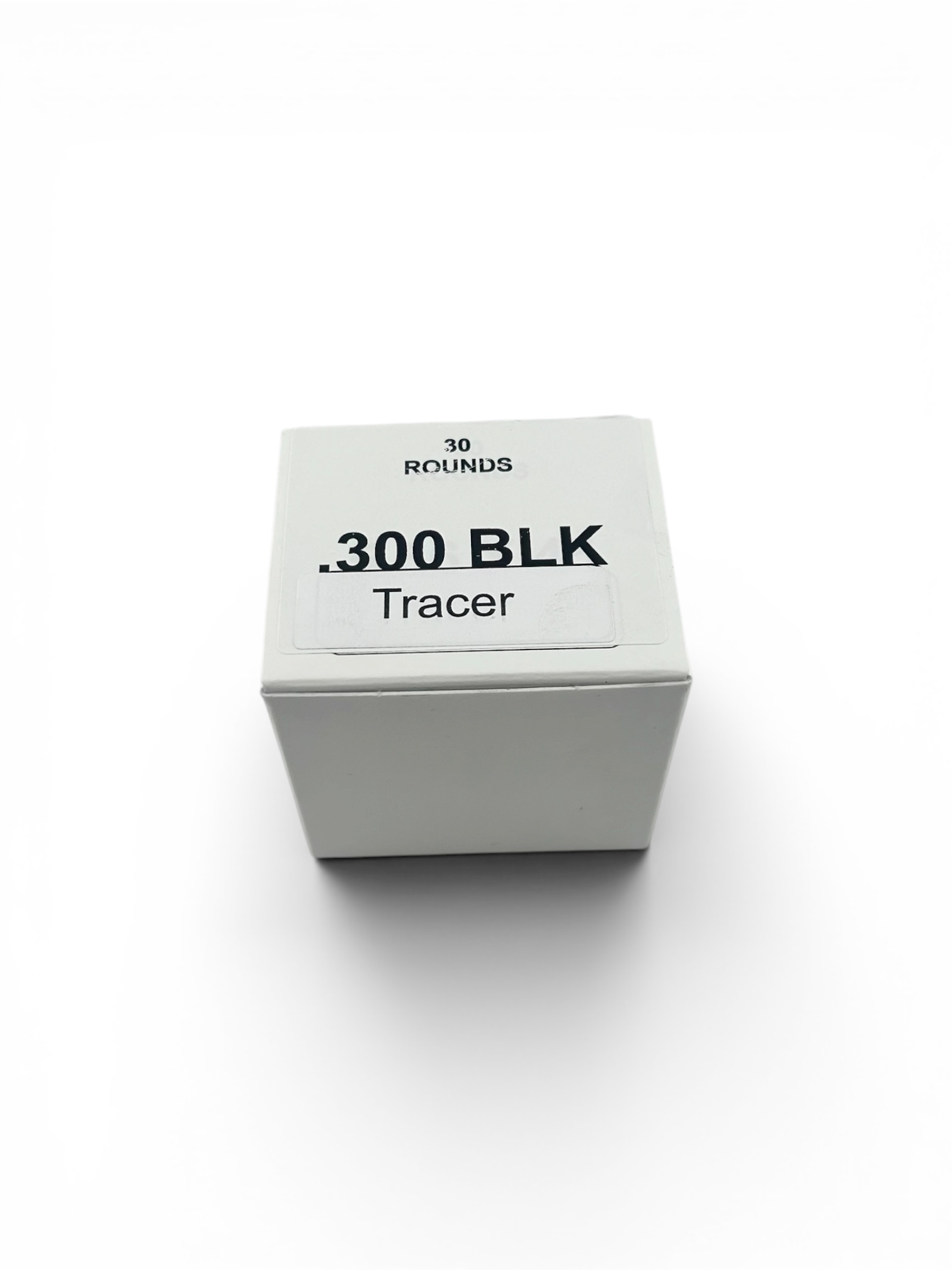 50 rounds .300 Blackout (7.62×35) Tracer ammo. This ammo is commercially reloaded with cut down Lake City brass and new military M62 tracer projectiles. 30 rounds.