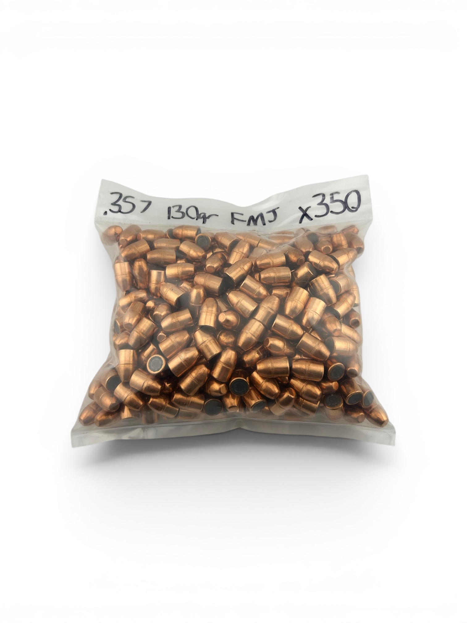 38 Cal (.357) 130 Grain Flat Point FMJ Projectiles. 350 Projectile pack