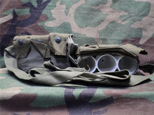 40 mm Six round canvas bandoleer with deep plastic protector for high explosive or pyro. Rounds. (rounds not included with this item).