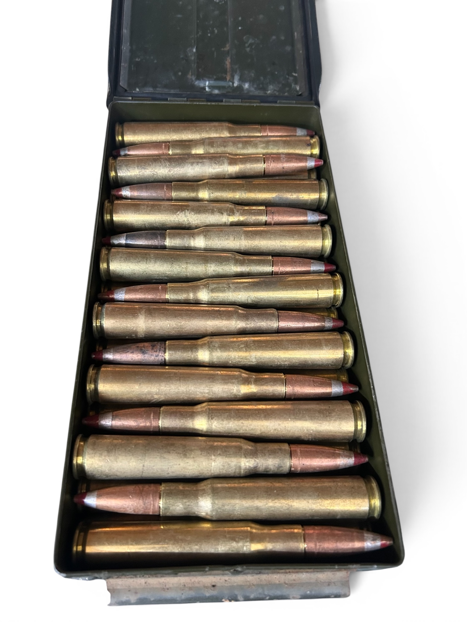 50 Caliber mixed ammunition that we found in our warehouse, we are not sure where this Ammunition came from so it is sold as components only and not safe to shoot.  Components only!!