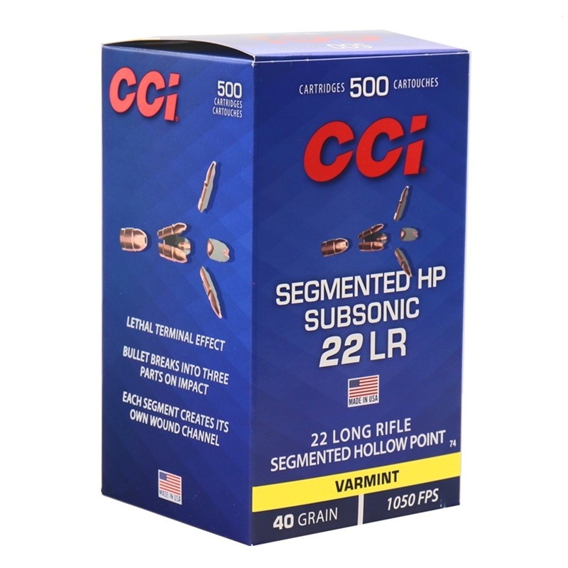 CCI Subsonic 22 Long Rifle Ammo 40 Grain Copper-Plated Segmented Hollow Point. 500 RDS.