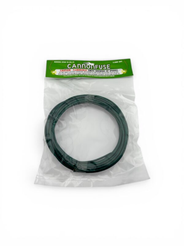 “Green Cannonfuse” is our newest import of basic cannon fuse or as some call it “Regular Visco”. It can be used for timing fireworks, lighting rockets or other devices and it is the best fuse for lighting your cannon.