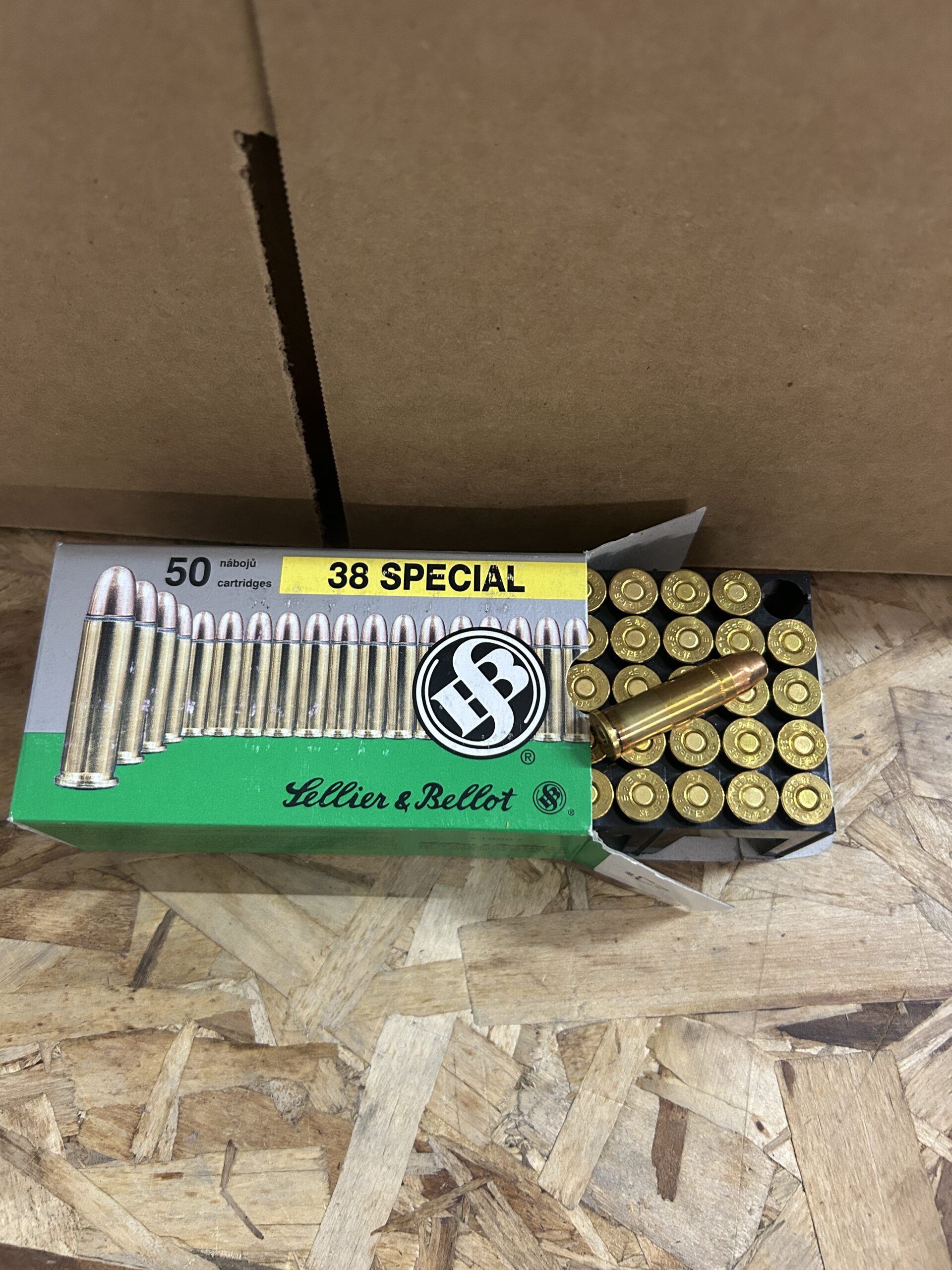 Sellier & Bellot 38 Special, 158 Grain Full Point projectile, brass case, Non-Corossive, Non-Erosive primers. these are older boxes of Sellier 7 Bellot 38 special but still same great ammunition that they are producing today.
