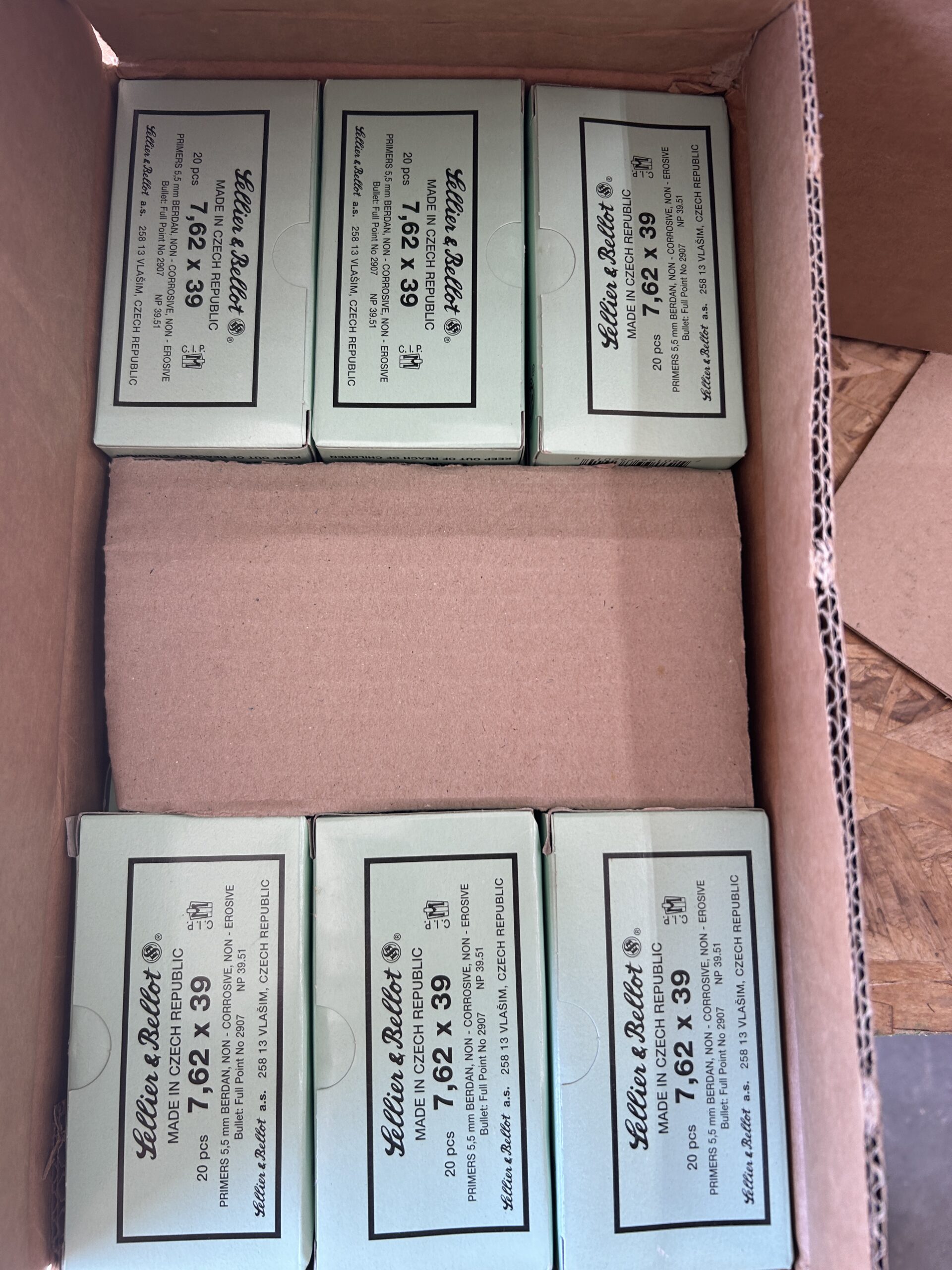 Sellier & Bellot 7.62×39, 123 Grain. 900 round case.