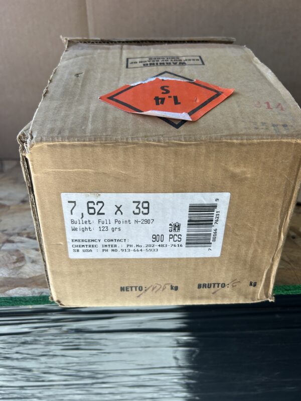Sellier & Bellot 900 round case 7.62×39, 123 Grain, Non-Corrosive, berdan Primed, Steel Case ammo.